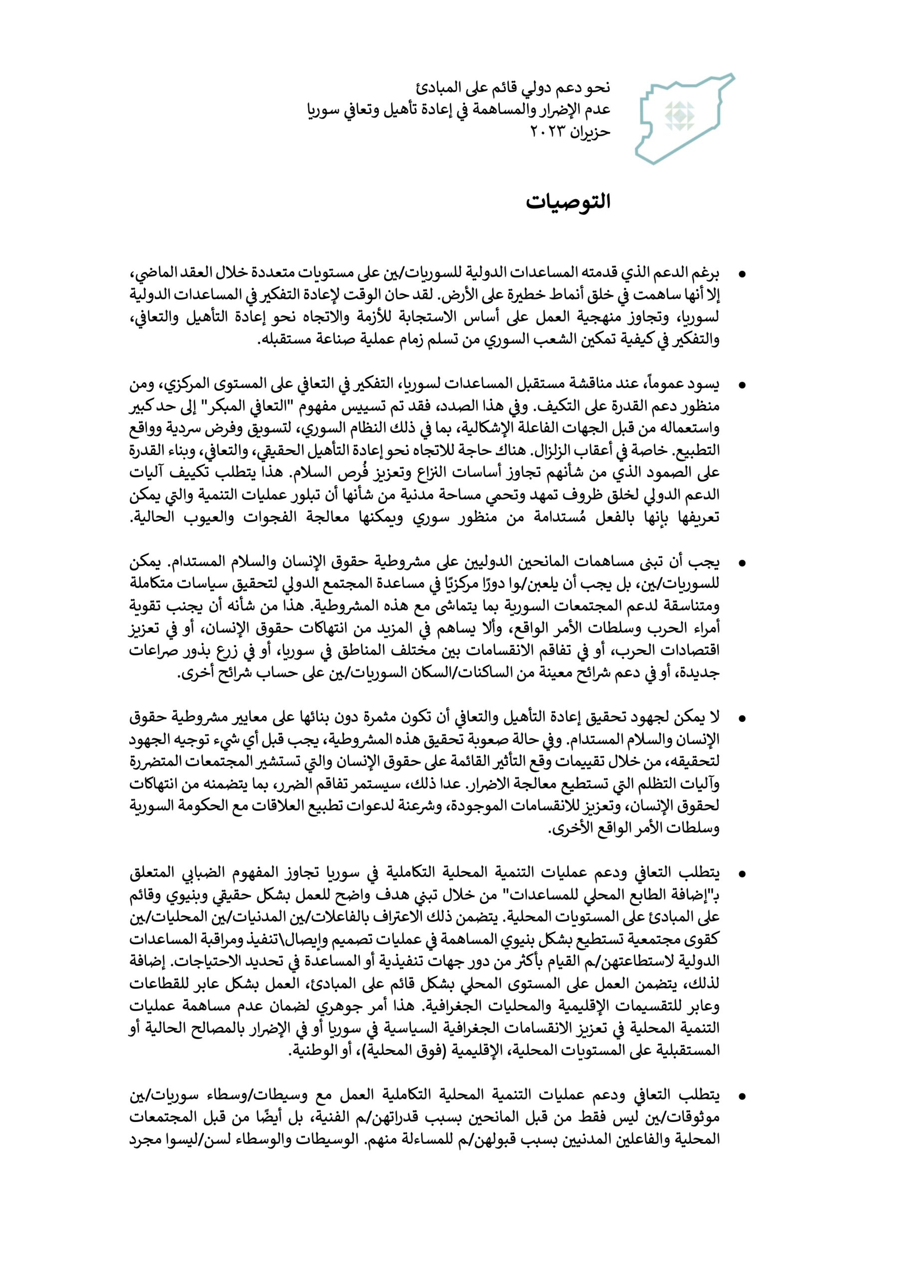نحـو دعـم دولـي قائـم على المبـادئ: عدم الإضرار والمساهمة في إعادة تأهيل وتعافي سوريا