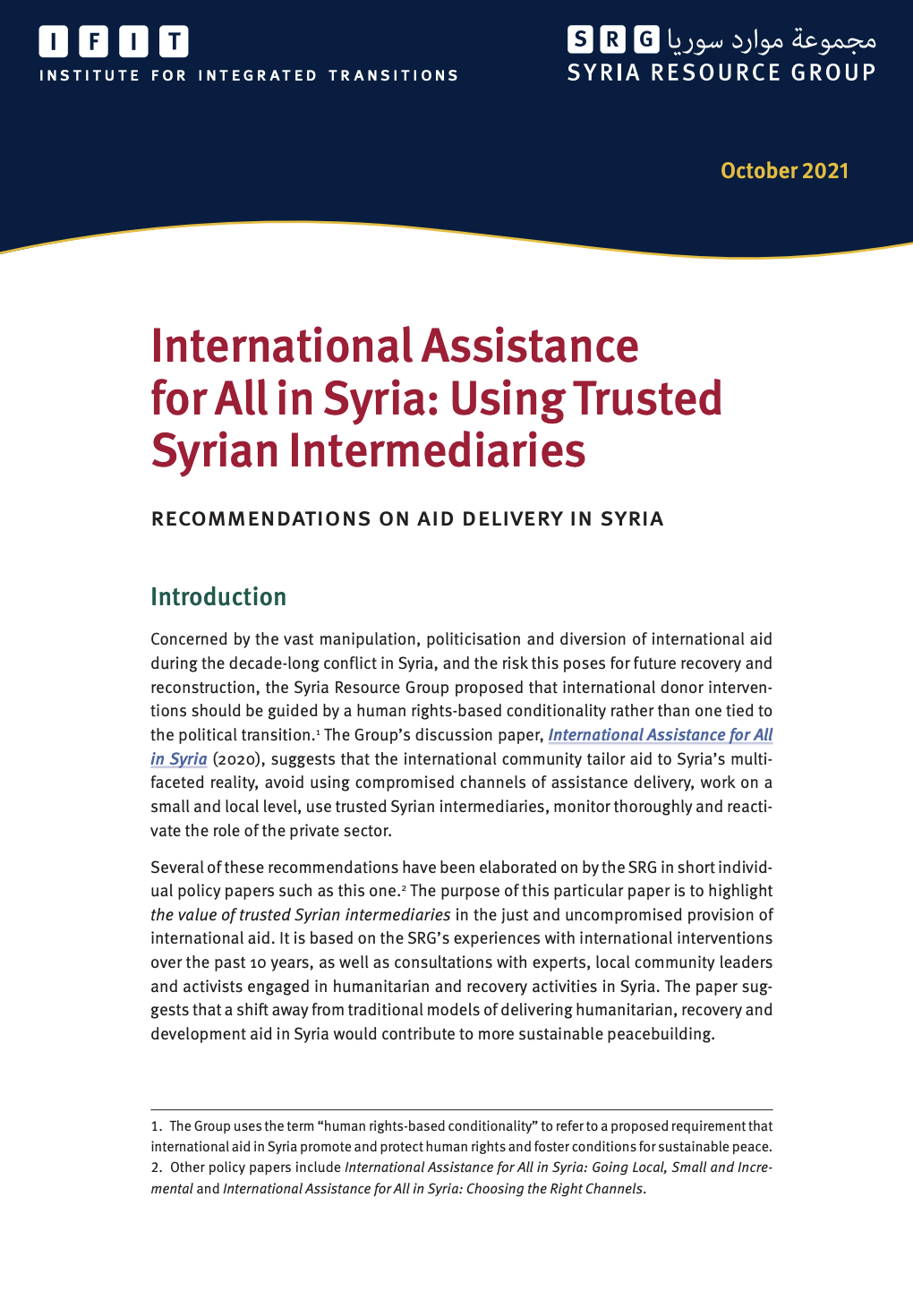 International Assistance for All in Syria: Using Trusted Syrian Intermediaries
