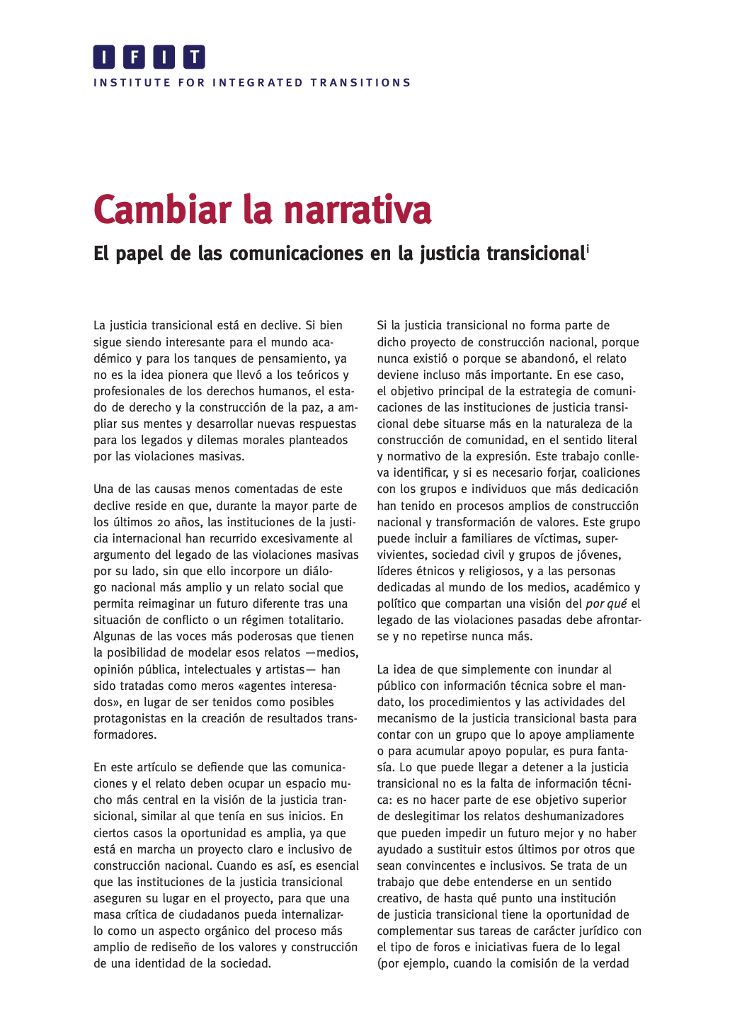 En esta publicación de IFIT se defiende que las comunicaciones y el relato deben ocupar un espacio mucho más central en la visión de la justicia transicional.